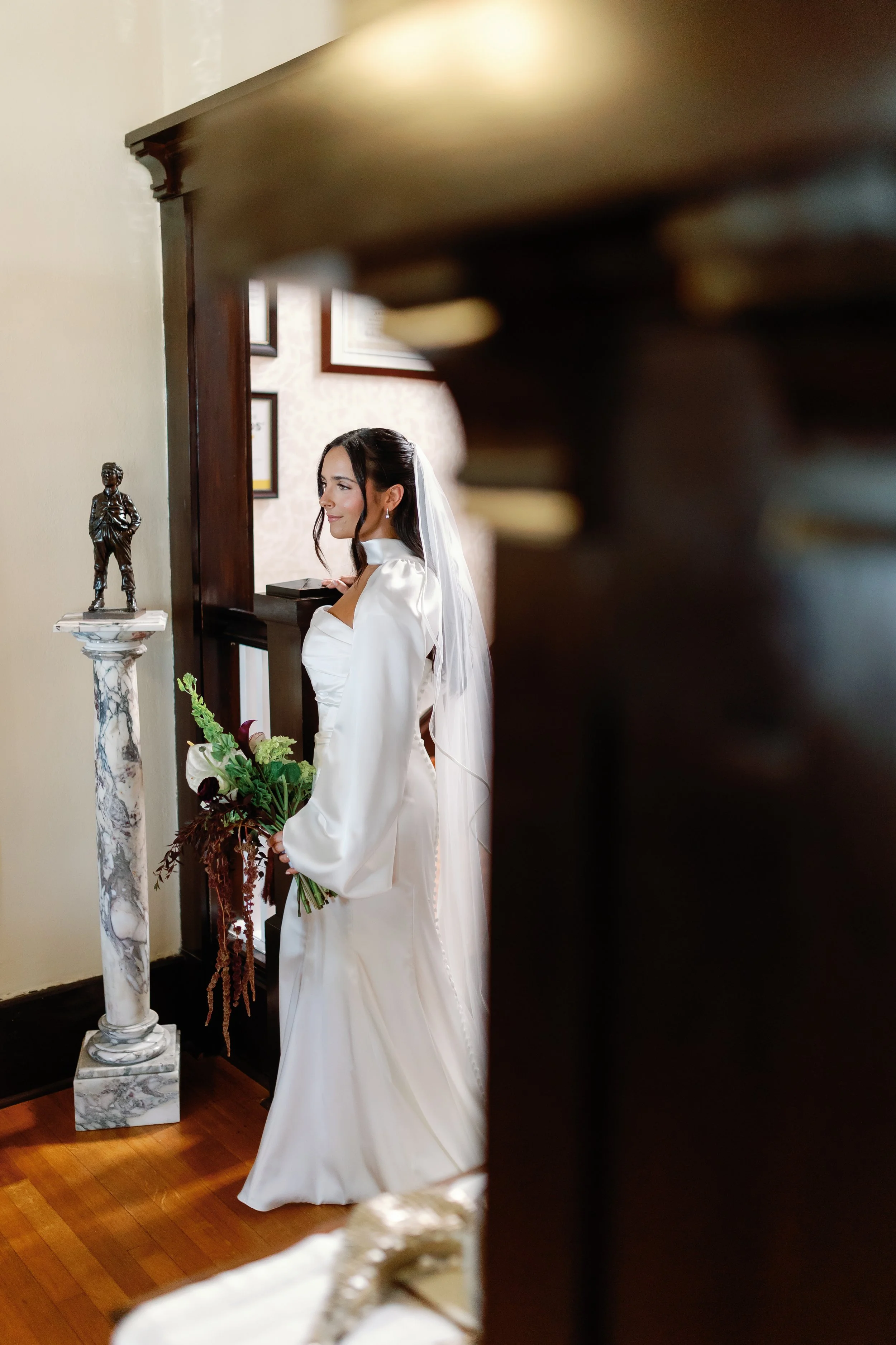 Stately Architecture: The historic home provides a sophisticated, classic backdrop for everything from your getting-ready details to your first look on the veranda.